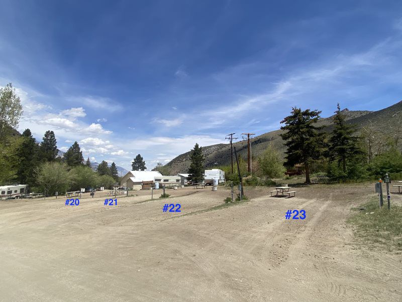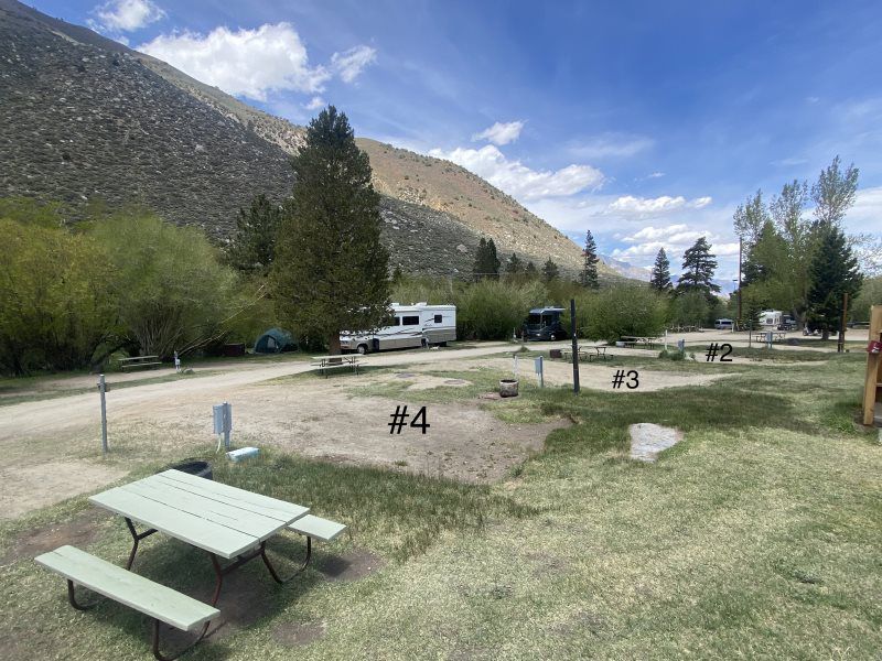 Creeksites A-F are half-hookups on the creek; Water, 30Amp electric, and Greywater hookups are provided. You must hold your blackwater, and may dump at any open site on your way out or schedule a pump out with Bishop Waste.