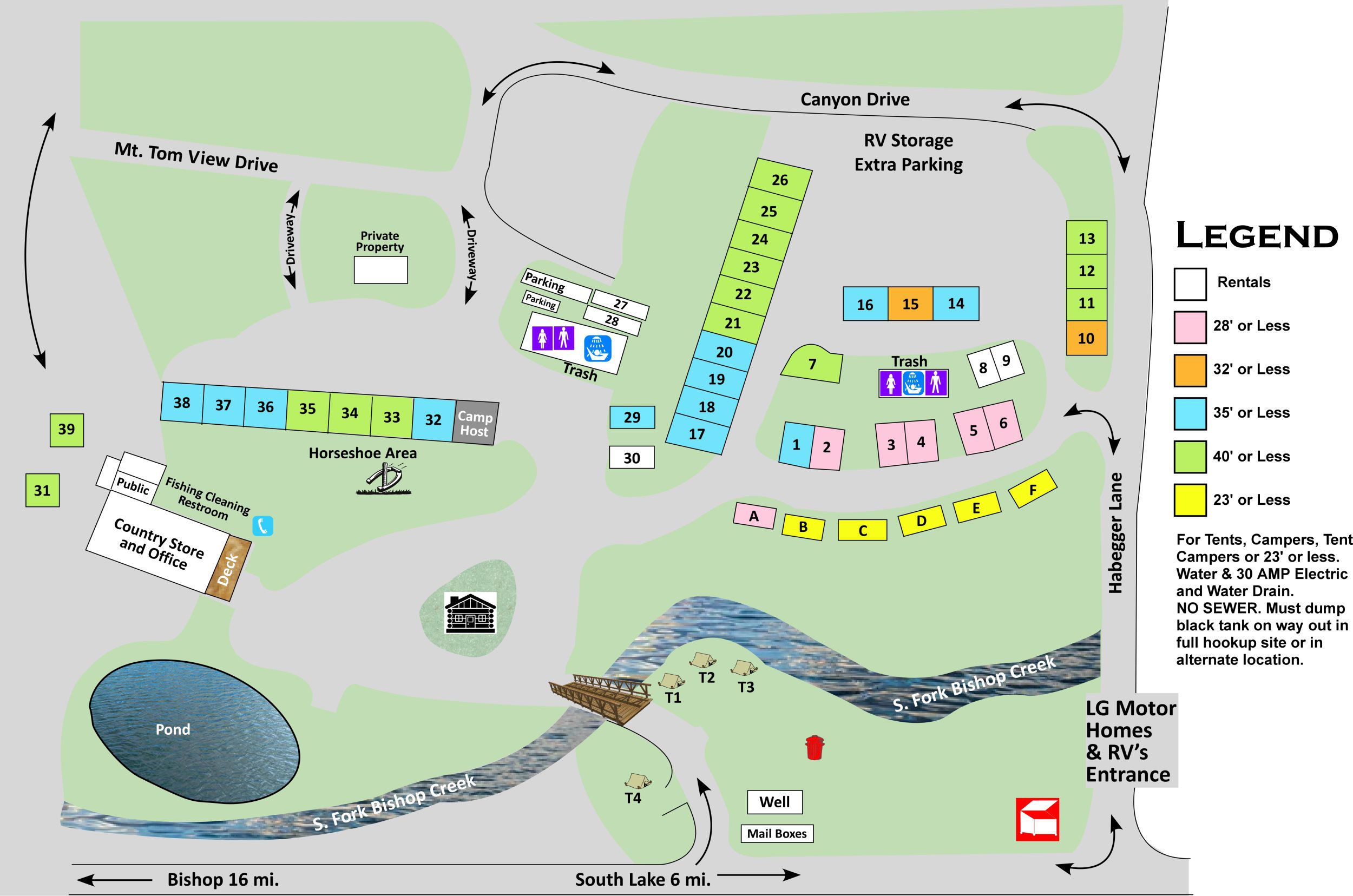 Gathering or cutting wood is not permitted in the RV park, on surrounding private property, or in the Inyo National Forest. Damage to surround trees will incure a $150 fine. Firewood and charcoal can be purchased at the store.